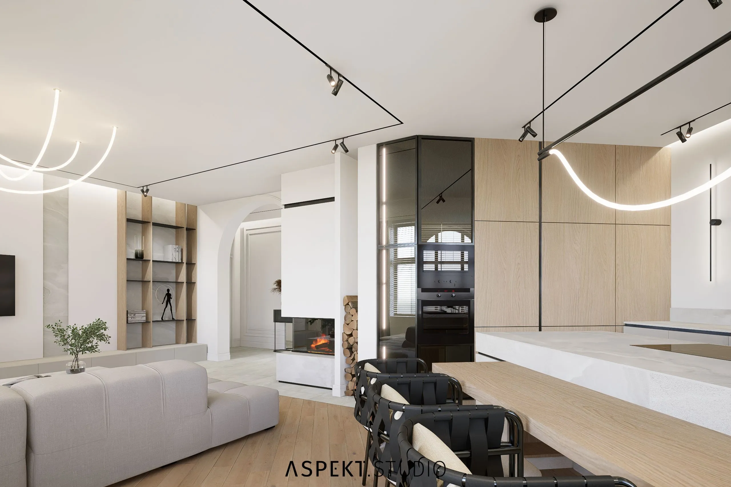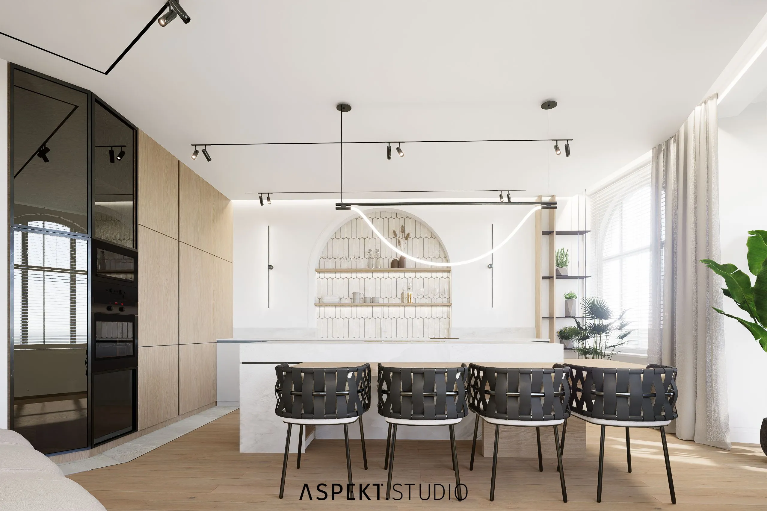 Przedstawiam propozycję aranżacji wnętrz dla mieszkania w kamienicy w Słupsku. Mieszkanie od początku posiadało duży potencjał projektowy – duże, wysokie pomieszczenia o elastycznym układzie do aranżacji. W rozwiązaniach postawiłam na przestrzeń, przytulność i dobrze rozplanowaną funkcję. Mieszkanie było wyposażone w piękną i rzadko spotykaną formę stolarki okiennej w formie łuków. Moim pomysłem było uwydatnienie tej formy architektonicznej również wewnątrz. Kilka elementów nabrało podobnej formy tj. wnęką nad blatem w kuchni, otwór drzwiowy z korytarza do salonu, detal płytek ściennych, czy lustra w łazience. Materiały użyte w projekcie powtarzają się w całym mieszkaniu, tworząc wrażenie spójności i powiększenia przestrzeni.