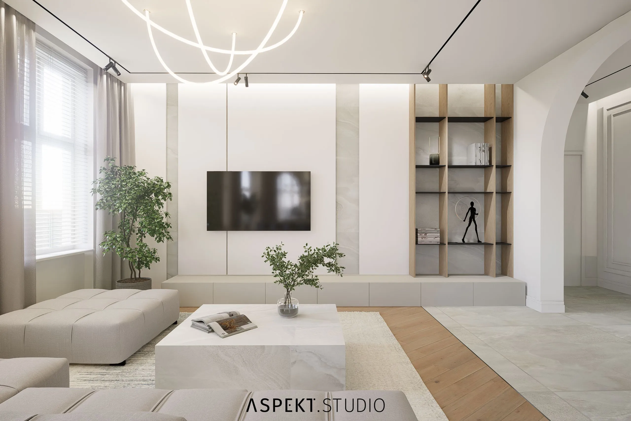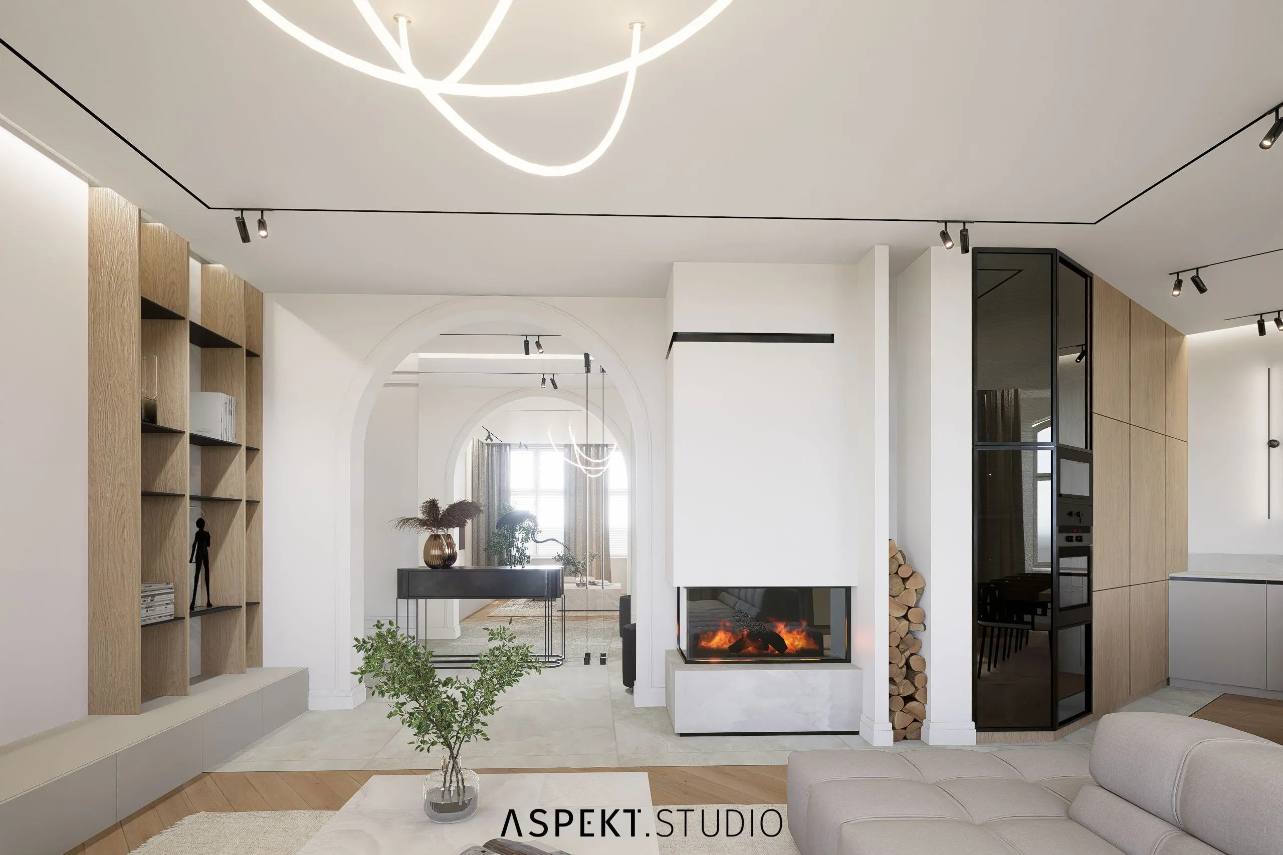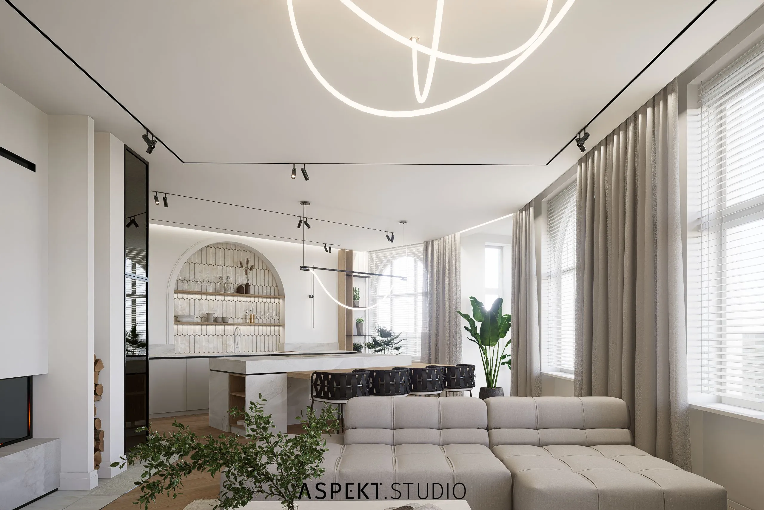 Przedstawiam propozycję aranżacji wnętrz dla mieszkania w kamienicy w Słupsku. Mieszkanie od początku posiadało duży potencjał projektowy – duże, wysokie pomieszczenia o elastycznym układzie do aranżacji. W rozwiązaniach postawiłam na przestrzeń, przytulność i dobrze rozplanowaną funkcję. Mieszkanie było wyposażone w piękną i rzadko spotykaną formę stolarki okiennej w formie łuków. Moim pomysłem było uwydatnienie tej formy architektonicznej również wewnątrz. Kilka elementów nabrało podobnej formy tj. wnęką nad blatem w kuchni, otwór drzwiowy z korytarza do salonu, detal płytek ściennych, czy lustra w łazience. Materiały użyte w projekcie powtarzają się w całym mieszkaniu, tworząc wrażenie spójności i powiększenia przestrzeni.